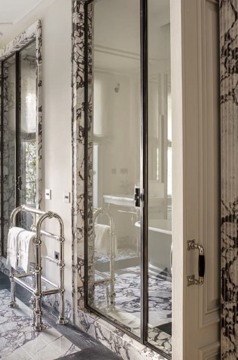 Another example is a bathroom designed for a recovering parent moving into the family home. A widened doorway, open shower, and thoughtfully placed grab bars make caregiving safer and less stressful, while warm tile, layered lighting, and elegant fixtures keep the space feeling welcoming and refined.