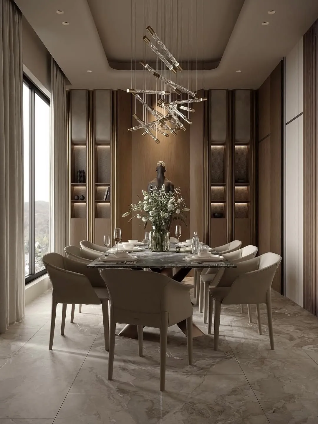 Luxury Interior Design: Harmonious Dining Room with Indoor-Outdoor Elegance